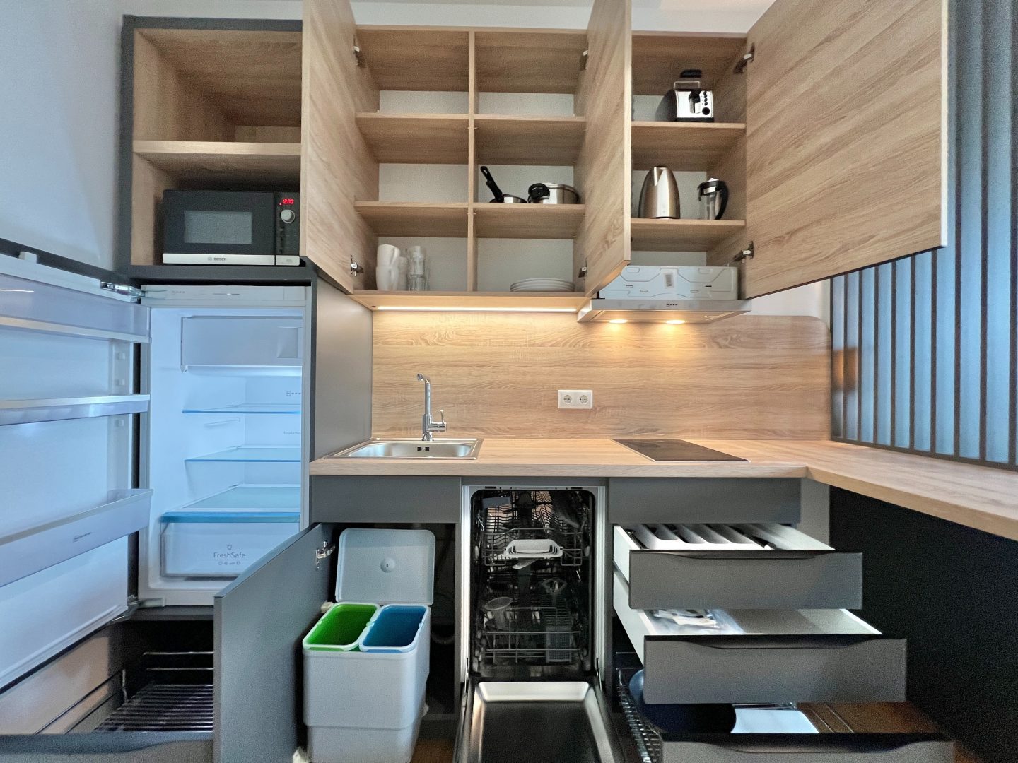 • Voll ausgestattete Einbauküche